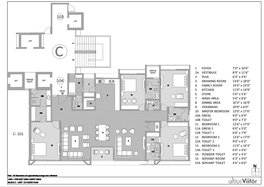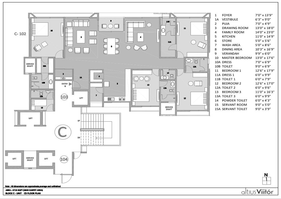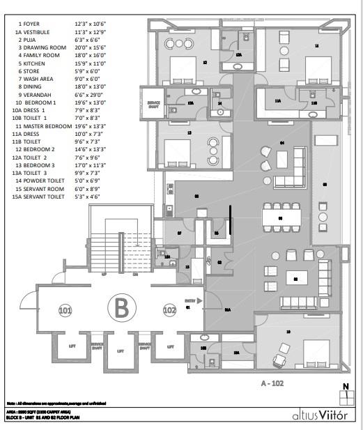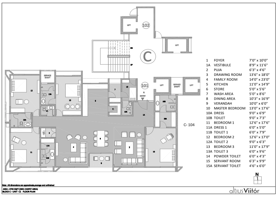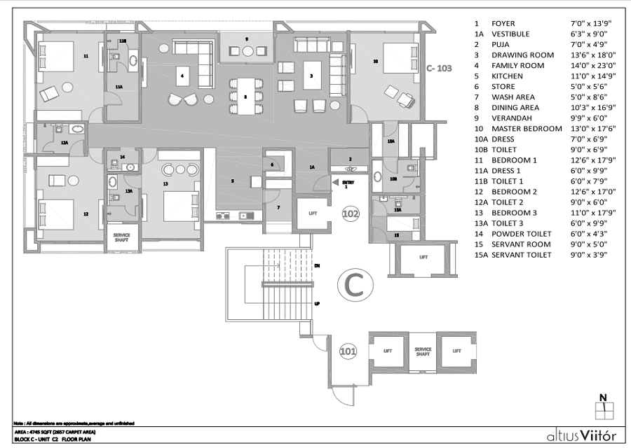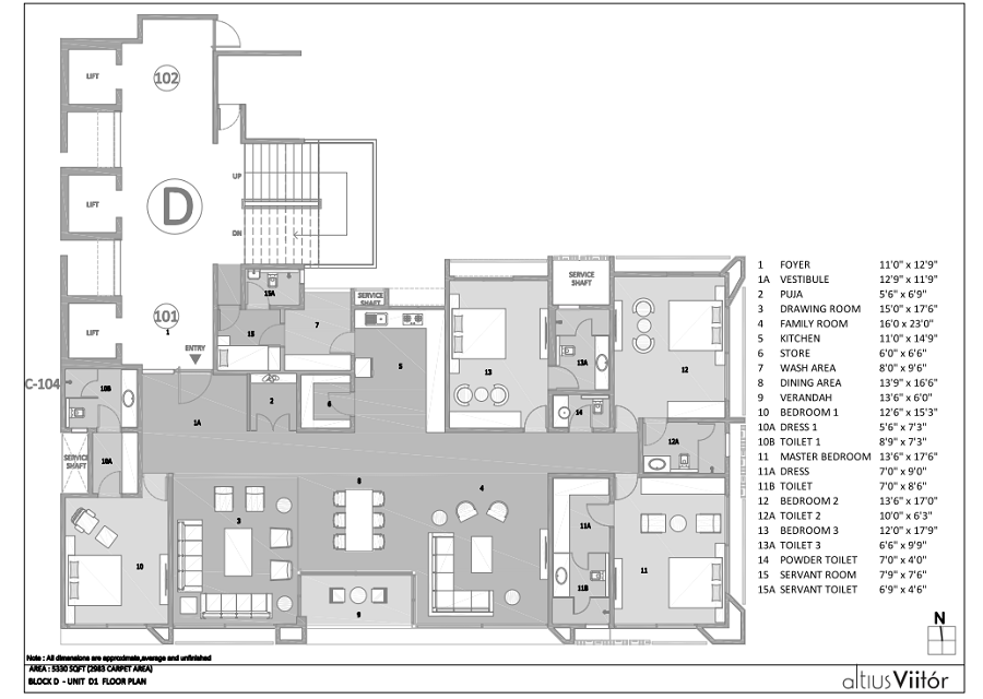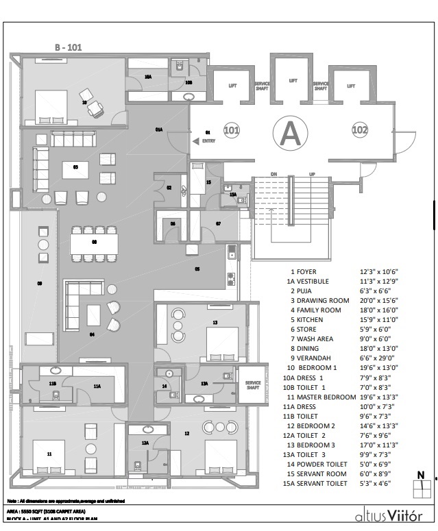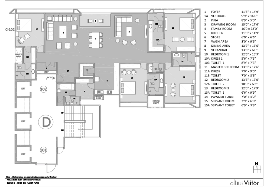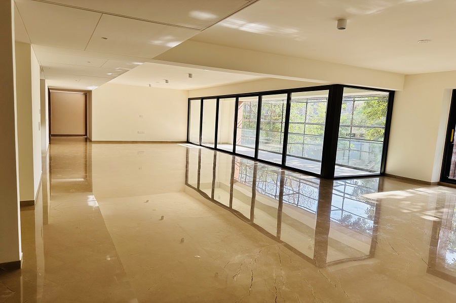 flooring: Vestibule, Drawing Room, Living & Dining and Master Bedroom: Italian Marble Wooden Flooring in two Bedrooms Other Bedroom, Kitchen and Domestic Help Room: Vitrified Tile Verandah: Anti-Skid Flooring